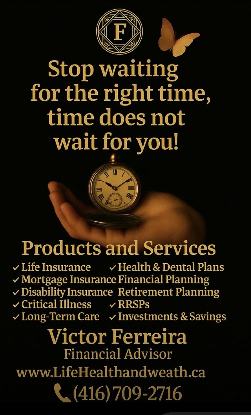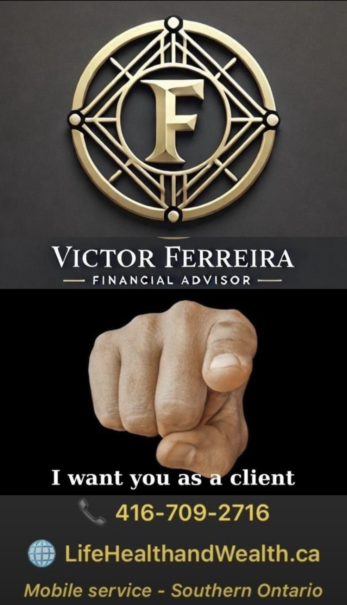 Vicor Ferreira recommended, that we have a financial plan in place, comprised of personal insurance and Investments and we accepted his recommendation. When my husband died, his life insurance policy paid the mortgage on the home and what was left I invested with him and now I'm getting a monthly income for the rest of my life. God bless Victor, as he is a very trust worthy person. I Ribeiro, Toronto, ON